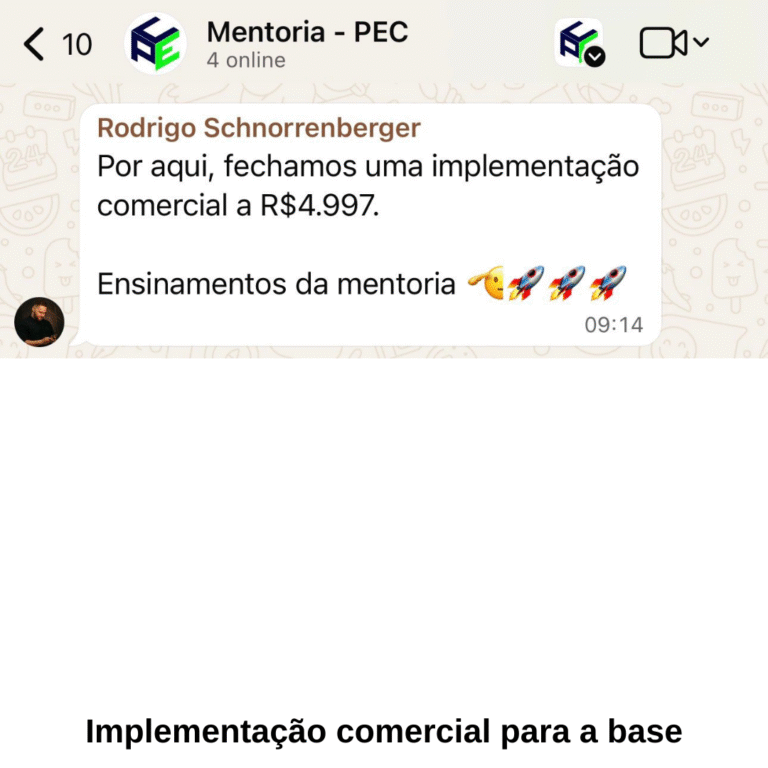 Meu nome é Thiago Teixeira, e passei mais de 13 anos na Ambev, atuando diretamente na gestão de processos comerciais e grandes times de vendas. Durante esse período, fui responsável por implementar rotinas de alta performance, conquistar selos de qualificação e certificação, e alcançar um dos maiores reconhecimentos da companhia: o selo de sustentabilidade, após entregar o setor comercial com 95% dos indicadores de performance e processos plenamente executados. Toda essa experiência me levou a desenvolver um método próprio de estruturação comercial, focado em previsibilidade, rotina e dados. Com base nisso, criei o PEC Programa de Excelência Comercial, uma mentoria voltada para donos de agências de marketing que precisam estruturar o comercial de forma organizada, escalável e orientada por resultados reais, não por achismo ou sorte.